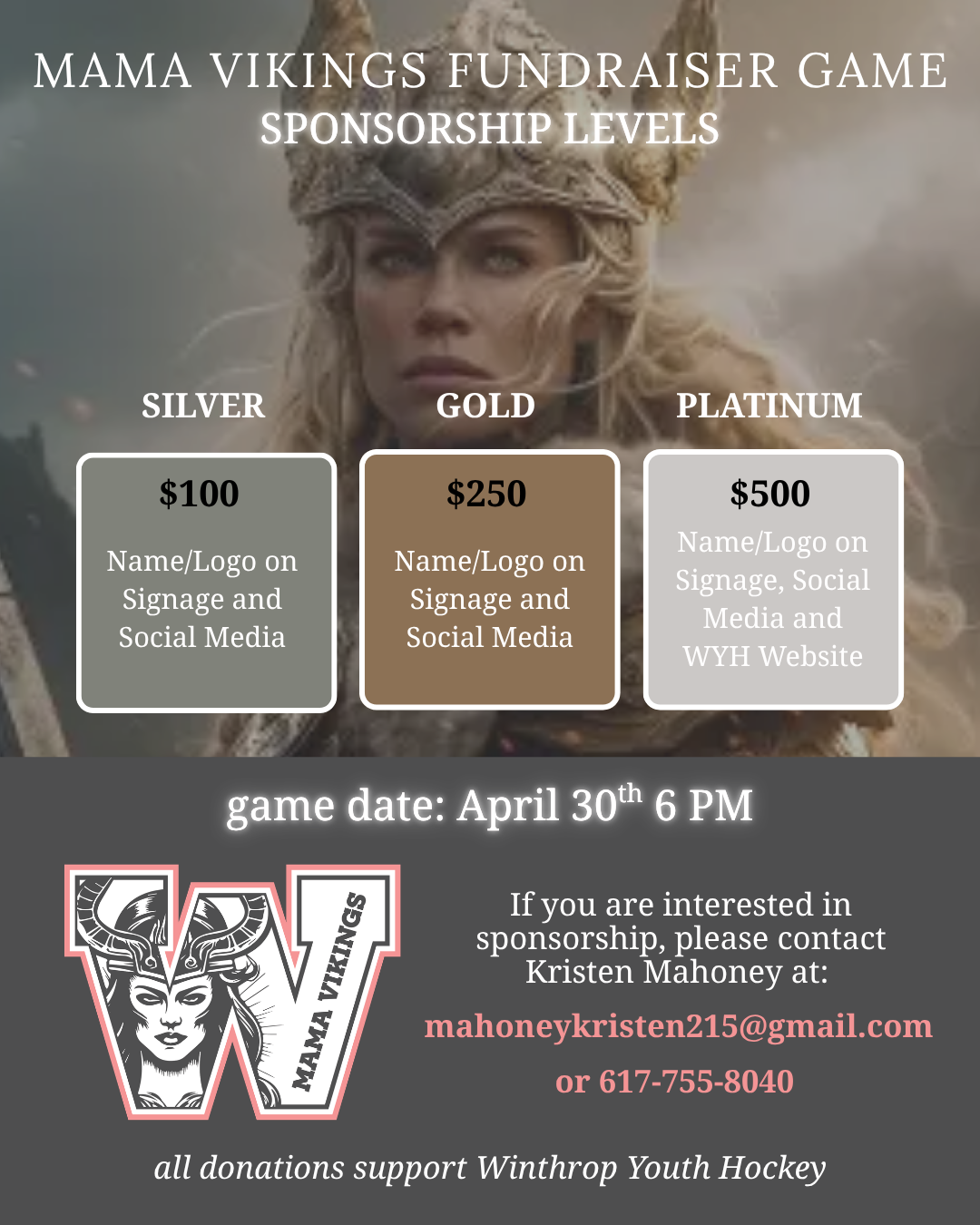 The Mama Vikings Fundraiser Game is one of the most unique and meaningful traditions in Winthrop Youth Hockey.
